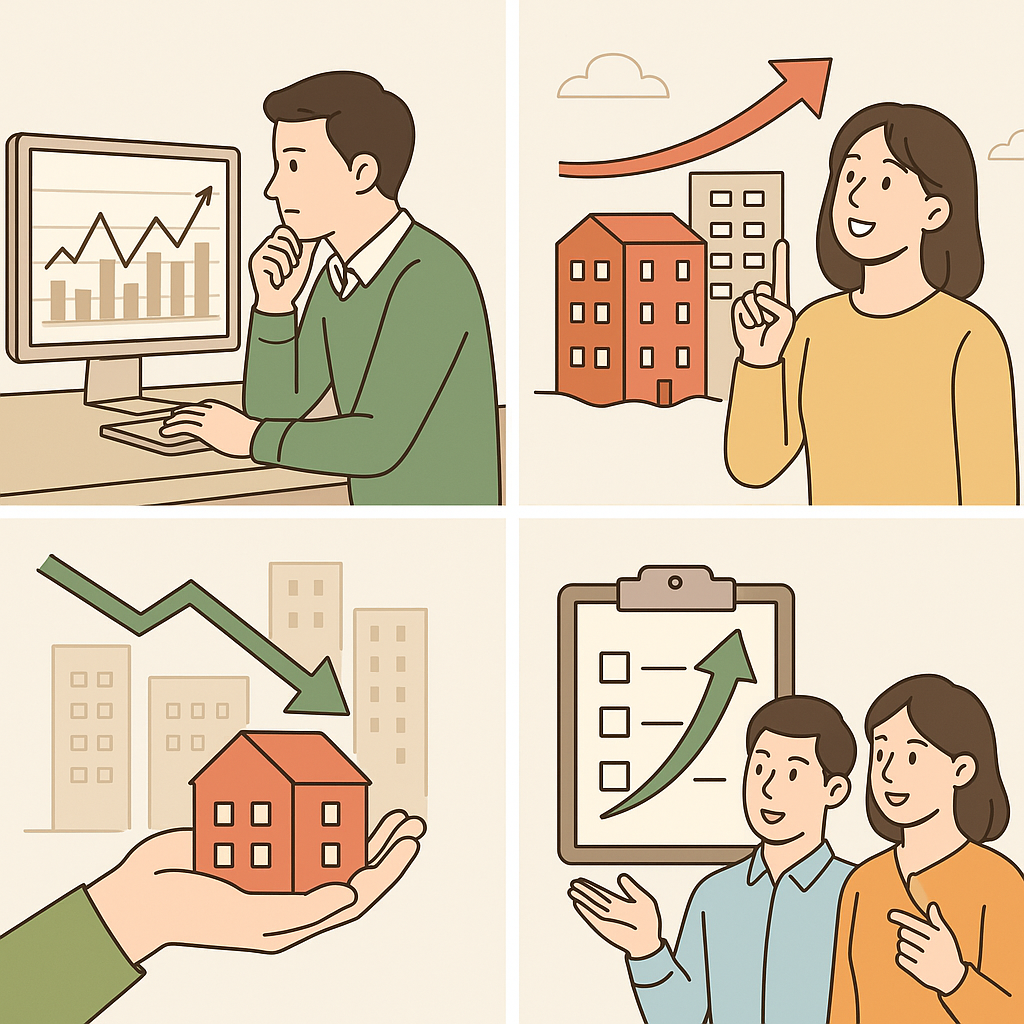 실제로 부동산 가격 하락기에는 거래량이 먼저 급감합니다. 집값이 떨어져도 사고 싶어 하는 사람이 없어지기 때문이죠. 이럴 땐 뉴스에 “하락세 완화”라는 말이 나와도 함정일 수 있습니다. 거래량이 늘지 않는다면, 그건 진짜 반등이 아니니까요.
